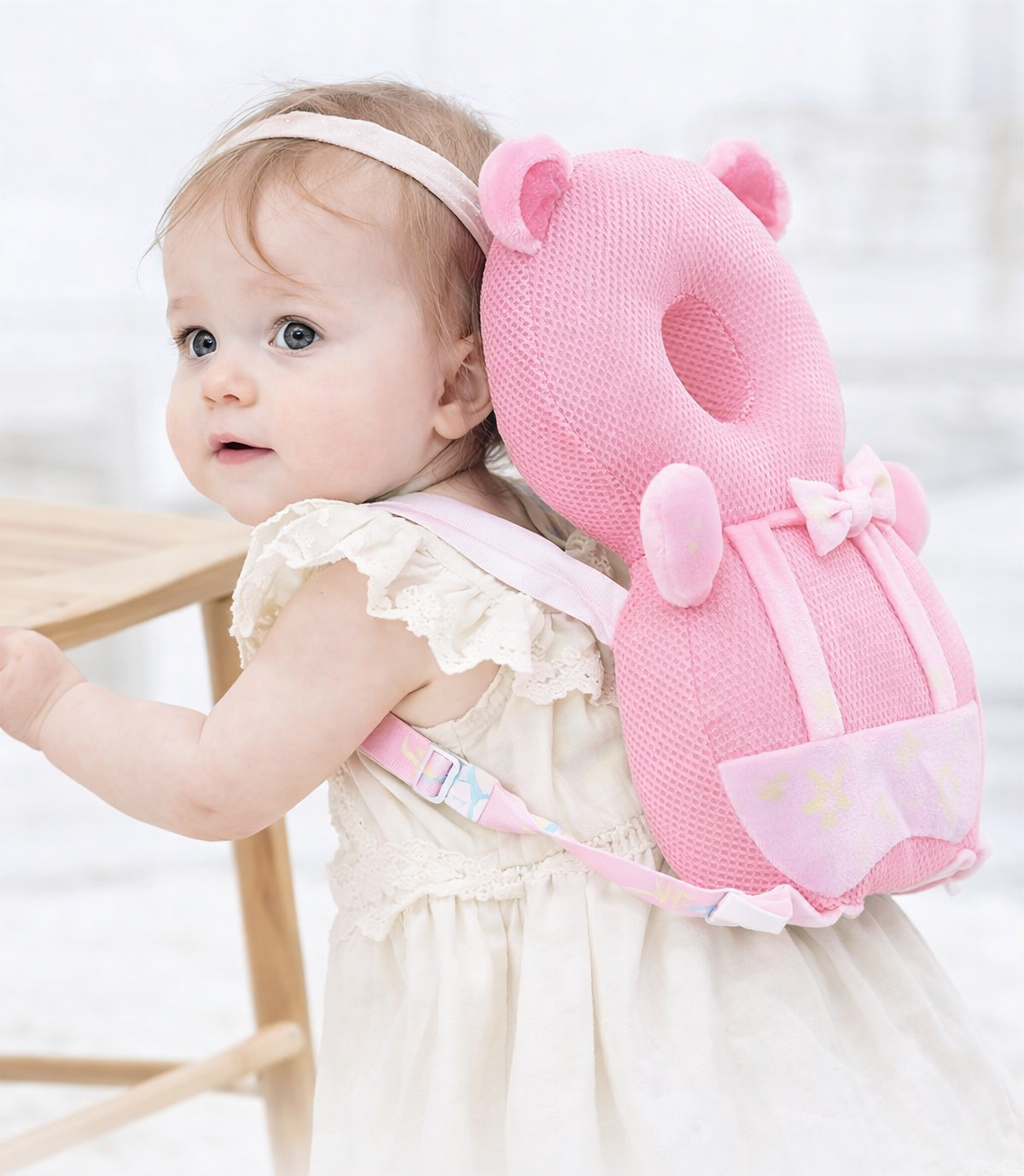 Diseño bonito y divertido que resulta atractivo para el bebé. Material extra suave, no se deforma, no pierde color y no genera motas (pilling). Fácil de limpiar y mantener. Función amortiguadora que ayuda a reducir golpes, evitando dolor o lesiones en la parte posterior de la cabeza en caso de caídas. Ideal para bebés y niños pequeños en etapas de gateo, sedente, de pie y primeros pasos.